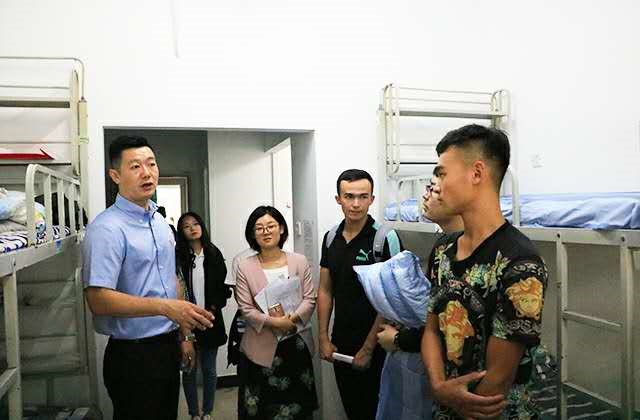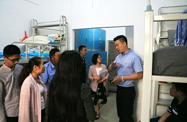 为了使新生更快地适应宿舍生活,太阳成城集团副经理牛奔、2018届辅导员杨韫佳老师以及部分员工会成员一同前往7号、9号员工宿舍楼,走访了太阳成城集团2018届新生所在宿舍。