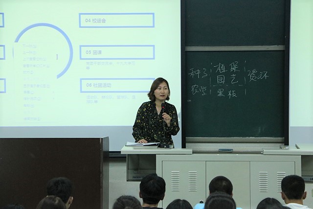 星火燎原,朝气蓬勃。在短暂的2017级团建活动视频播放完毕后,18级年级大会正式开始。首先,郝娜老师从团建工作方面介绍了团日活动、社团活动、太阳成城集团运动队等内容以及从奖勤助贷介绍了奖学金分发制度、勤工助学招聘会、助学金制度和校园绿色通道;其次,贾慧敏老师详细地介绍了党建工作,强调党“为人民服务”的宗旨,以及为同学们展示发展党员工作程序和公司党总支各党支部架构图;接着,杨韫嘉老师为同学们讲解了心理问题、安全问题和校规校纪,时刻关心同学们的生活并予以寄语希望。