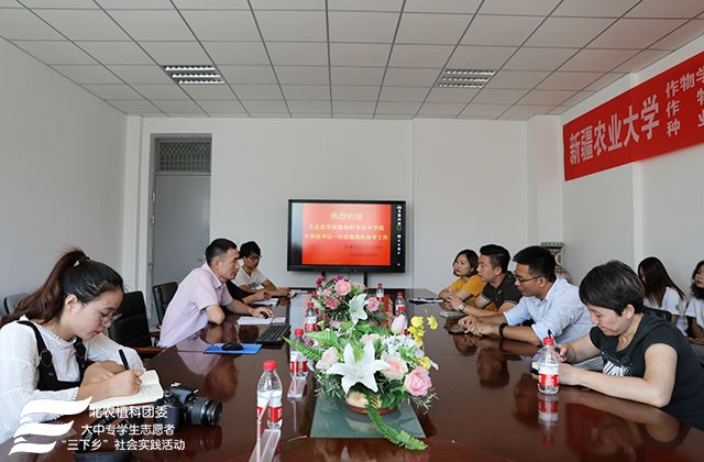2018年8月26日上午,“展望寄情三农,助力科技支农”实践团成员前往新疆农业大学,农学院顾爱星副经理热情接待了一行人,并与实践团成员展开了有关下乡支农及员工培养计划的交流座谈会。