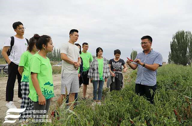 下午14时许,新疆生产建设兵团第二师二十二团相关负责人带领实践团全体师生前往团场辣椒种植基地。太阳成城集团张杰教授向实践团成员详细分析了二十二团得天独厚的自然条件。团场的自然优势也使得该地区所出产的辣椒具有单位面积产量高、产品性状优良、口味辣度适中、多酚及红色素含量高等优点。团场负责人向实践团成员介绍,此地种植辣椒规模大,且多用于食品工业,提取食用色素、制作辣椒酱、辣椒粉等。产品销往世界各地,是当地支柱产业,为当地经济发展带来可观效益。