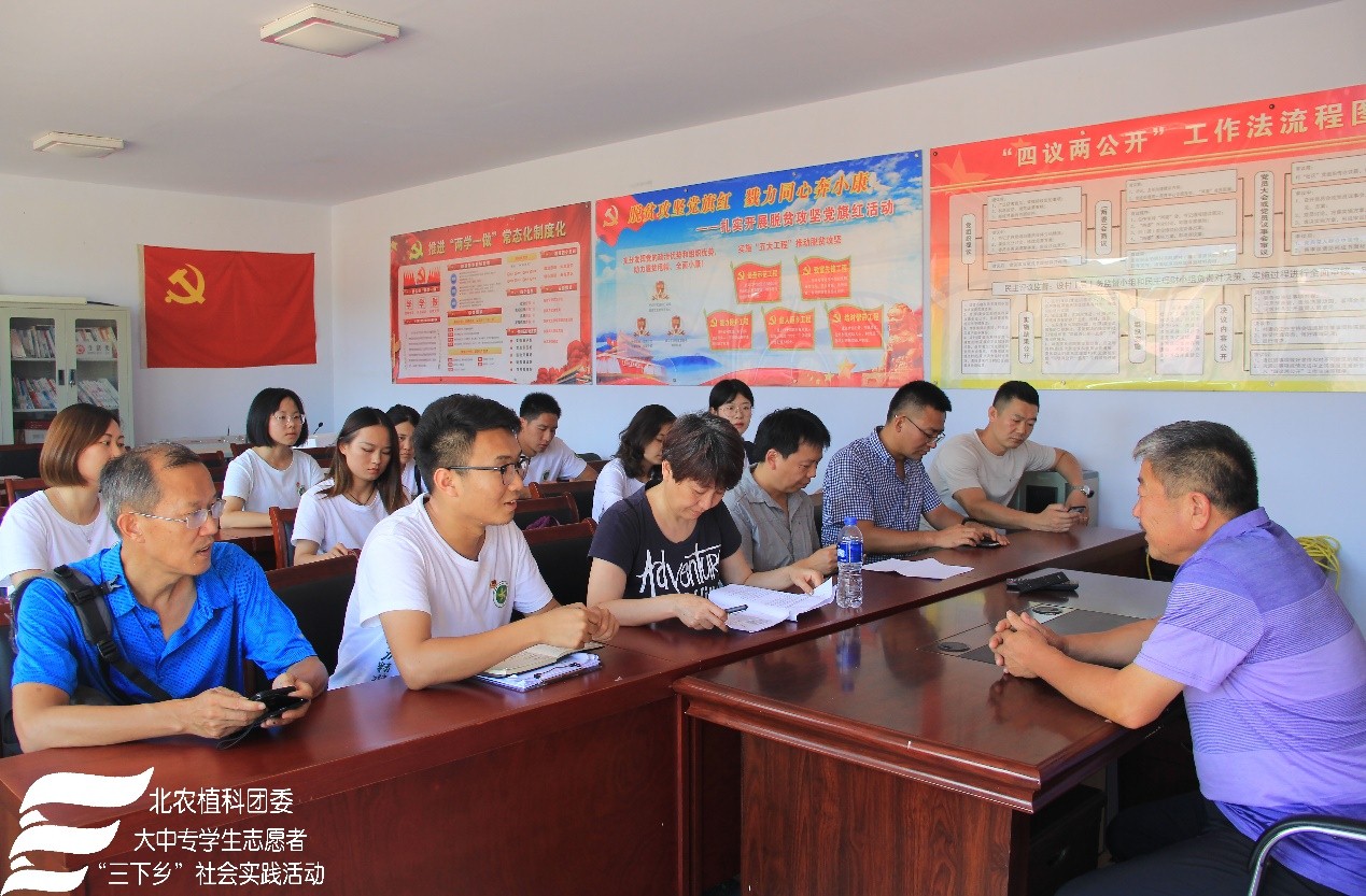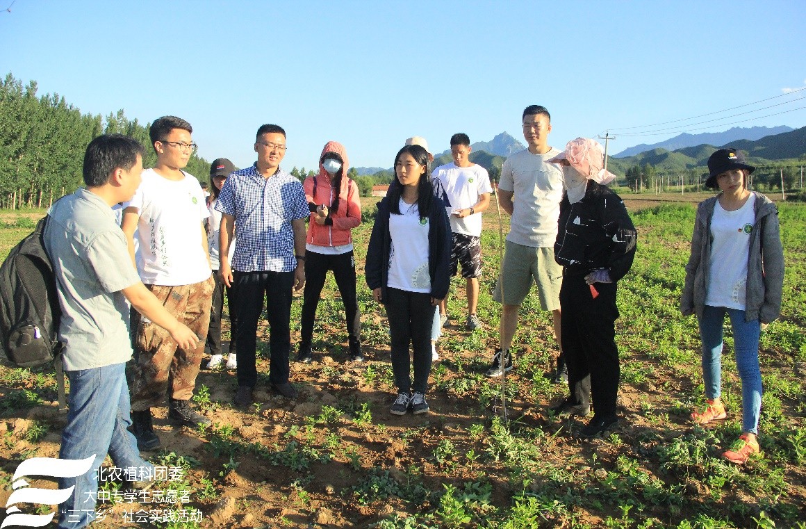 紧接着,实践团来到了官队营村,该村苹果梨种植大户听说果树专家的到来,热情地邀请实践团成员们前往果园参观指导。张杰老师为种植户提出了很多针对性意见,如果树间要留有一定间距,不可互相干扰;2.5米以上的树枝要及时压枝;树下树冠投影范围内不要有杂草等等。之后实践团马不停蹄地赶往中草药种植地——桔梗种植地,药农面对植物保护专家,诉说了种植中遇到的难题。缺乏技术支持、桔梗发苗率不高、苗长势不齐、死苗现象时有发生、机械播种导致的株间距不等,等等,都影响着桔梗的产率,更影响着药农的收益。种植专业知识的缺乏也成为限制农民受益的主要因素之一。