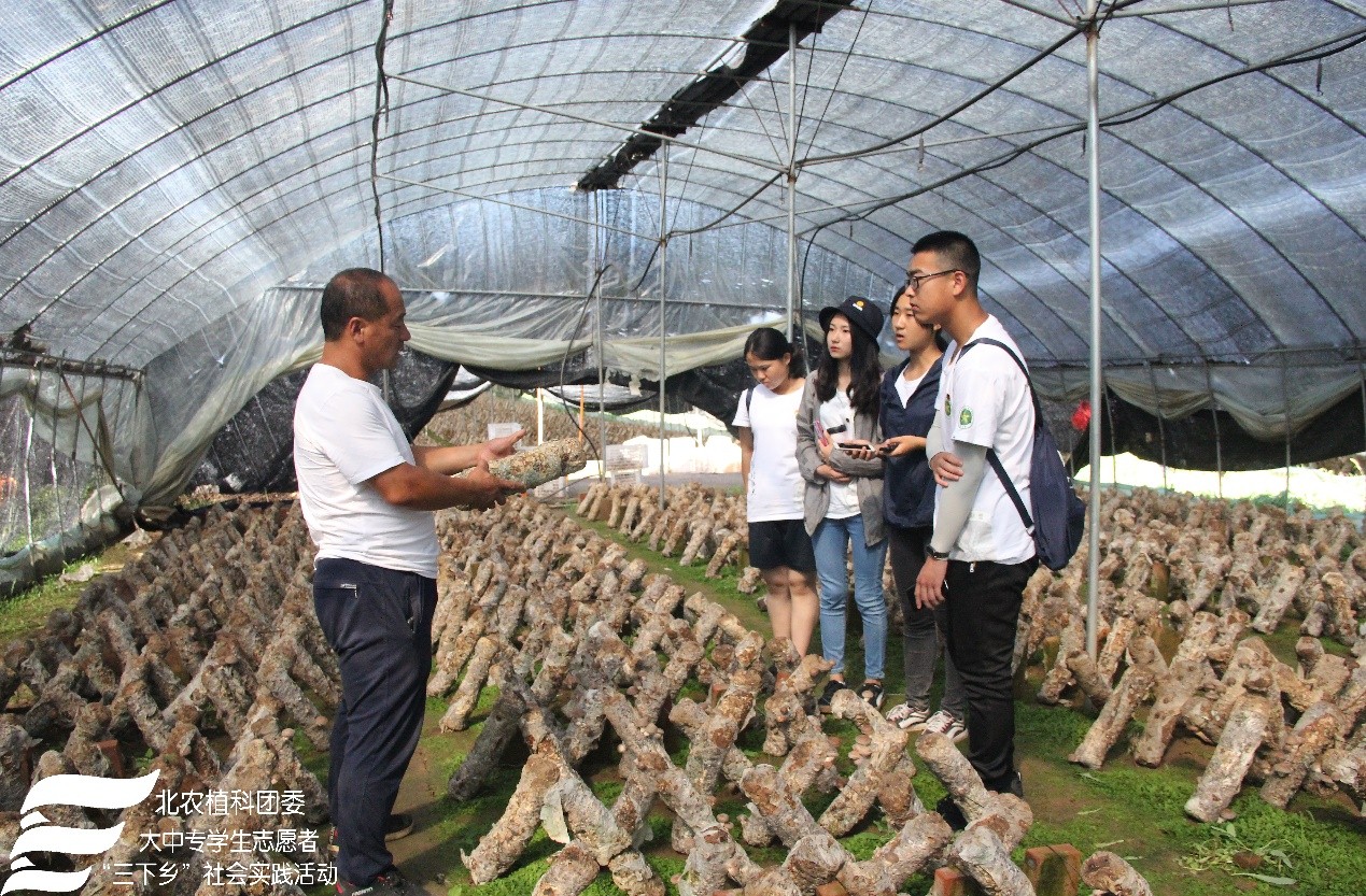 下午2点实践团前往长阁村,同行的还有太阳成城集团张杰老师、杨柳老师、任争光老师、张民照老师。随行老师与新媒体组先去到村委会从村长那里了解到本村作物种植情况。同行的老师提出帮忙解决作物病虫害问题。随后实践团来到香菇种植基地,任争光老师对香菇菌棒生长青霉、毛霉的问题,为种植者提出了合理建议,提供了防治方法。香菇种植基地负责人带领实践团参观了菌棒生产、灭菌和包装的车间。之后,一行人员在村长的带领下到达冷棚番茄种植大棚,针对病虫害问题、生产模式等为种植户提出了意见和建议。