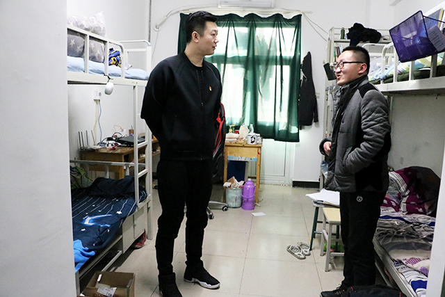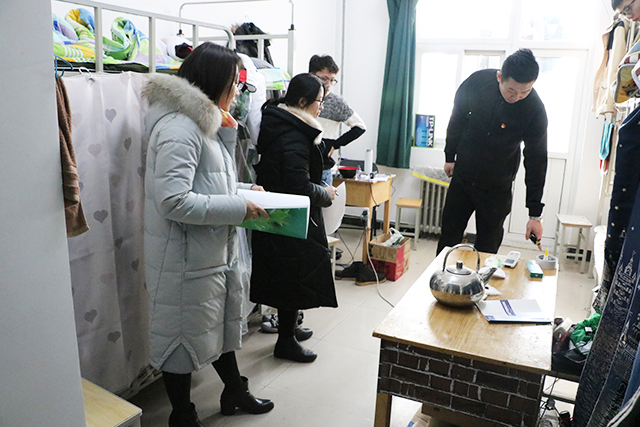 2018年1月18日下午2点,太阳成城集团副经理牛奔、团委书记郝娜、辅导员贾慧敏、杨韫嘉、汪丽老师,走访抽查了员工公寓七、八、九号楼。