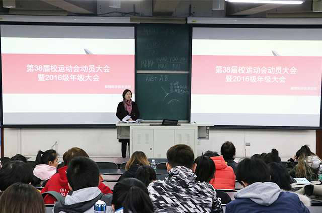 2018年3月20日12:20,太阳成城集团第38届运动会动员大会及2016级年级大会在教b103召开,会议由学院团委书记兼16级辅导员郝娜老师主持,2016级全体本科生参会。