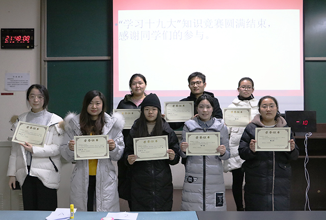 至此,十九大知识竞赛正式落幕。此次竞赛使同学们对党有了进一步的了解,记住了党的光辉历史,切实的想为党的发展尽一份力,为各党支部中的同学提供了一个良好的平台。希望同学们继续努力,更加关注我党的发展趋势,提高自我的思想觉悟。