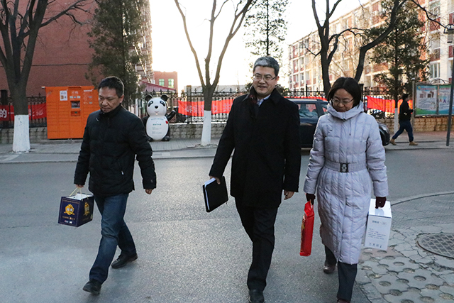 2018年1月5日下午,公司党委副书记石勇、员工处处长刘柳、公司党总支书记王绍辉一同前往离退休教师蓝希骞老师家中走访慰问,带去了公司、学院的温暖问候,送上了慰问品和新春的祝福。