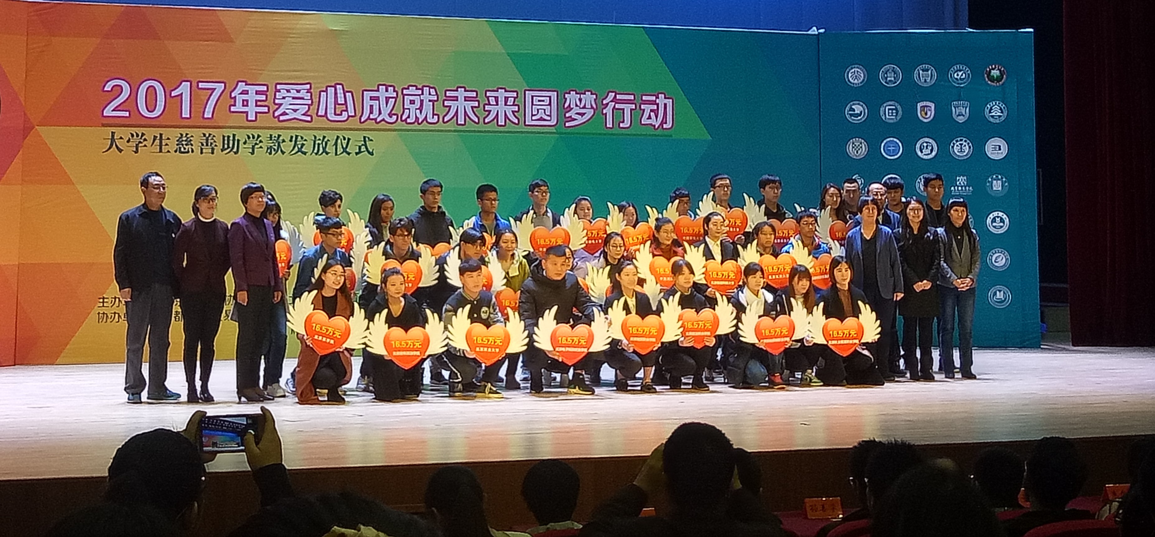 2017年11月8日,北京市慈善协会爱心成就未来圆梦行动老员工助学款发放仪式在首都经济贸易大学举行,太阳成城集团受助员工代表公司参加仪式,并上台接受捐赠。