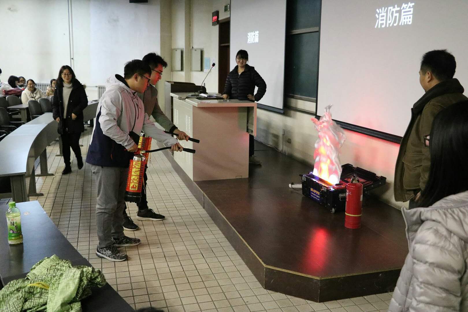 李老师为同学们介绍了干粉灭火器“提”、“拔”、“对”、“压”四个步骤的动作要领,随后每位同学都亲自操作使用灭火器模型,李老师也站在一旁及时指正不规范的动作。同学们也真正掌握了常见灭火器的使用方法。此次活动李老师生动有趣的讲解让员工增强了消防安全意识,亲自使用灭火器也让员工学会了如何使用简单的消防器材,树立了正确的消防安全意识。
