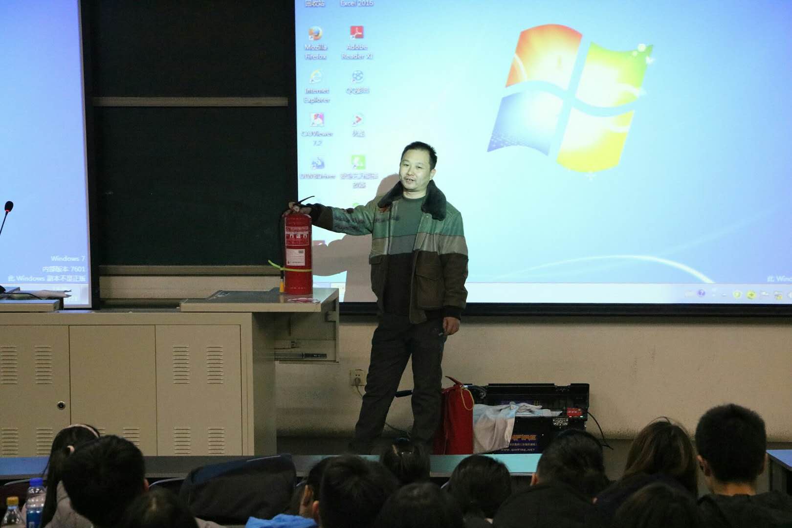 2017年11月21日18:30,太阳成城集团在教学楼B座203开展消防安全教育活动,此次活动请来了太阳成集团官方网站安稳处消防交通管理科科长李俊升为大一新生讲解消防安全知识,太阳成城集团副经理牛奔,辅导员杨韫嘉、汪丽参加活动。