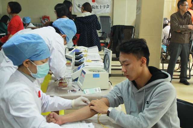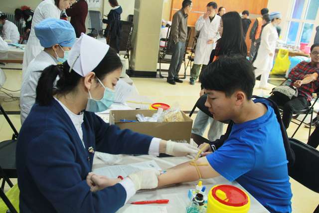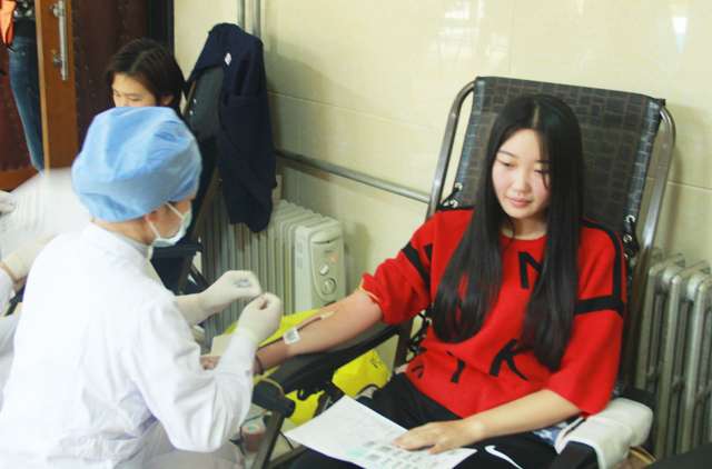 在献血区,同学们有序地排起长队,依次进行信息登记,静脉采血等环节。抽血时,虽有同学感到些许紧张,但仍为自己的行动能帮助他人,挽救更多的生命感到高兴。一旁的志愿者及时搀扶献血者,为他们送上红糖水,让爱心和感动弥漫整个校园。