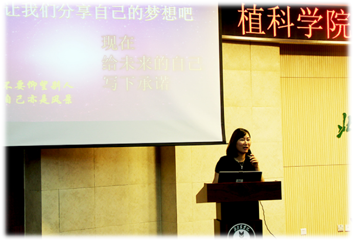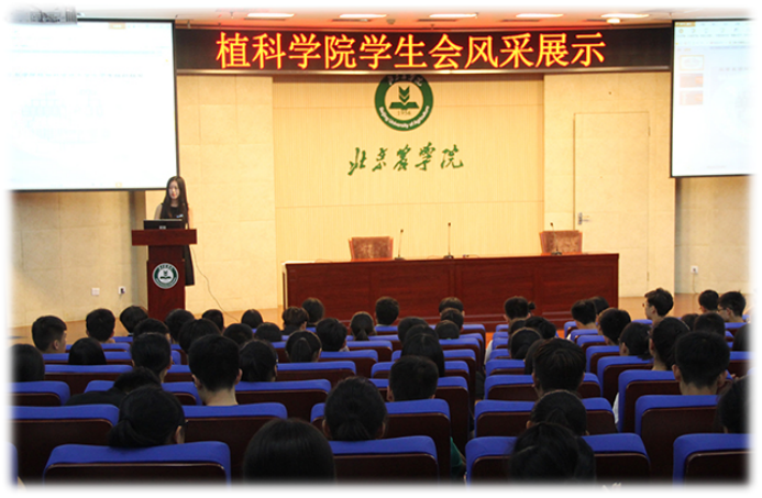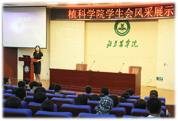 2017年9月7日下午6:30,太阳成城集团在图书馆报告厅开展了太阳成城集团员工会风采展示会,植科员工会的成员们将他们的工作心得和收获向同学们分享,出席会议的有团委书记兼16级辅导员郝娜、员工会成员及植科17级新生参加。大会由植科员工会主席陈馨蕊主持。