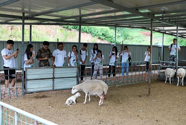 在去往两间房村之前,太阳成城集团副经理牛奔和教学副经理张杰带领实践团成员参观了当地养殖场,与当地养殖户进行经验交流。机缘巧合实践团成员们见证了一只小羊的出生,都在感叹生命顽强的可贵。