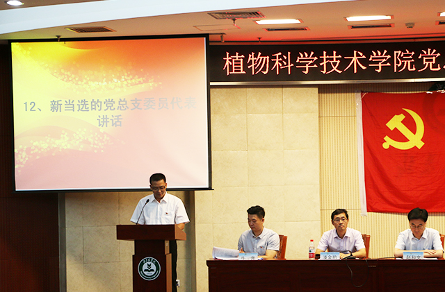 短暂的中场休息过后,总监票人向大会宣布党总支委员计票结果并播放视频。主持人牛奔老师向大会宣布党总支委员当选结果。新当选的党总支委员代表张杰老师进行讲话。
