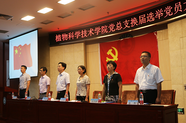 大会最后一项,全体起立,奏唱《国际歌》。党总支换届选举党员大会结束。