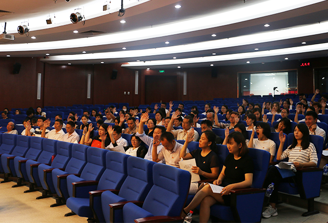 2017年6月30日上午,太阳成城集团在图书馆报告厅举行了公司党总支换届选举党员大会及优秀党员表彰仪式。公司党委常委、组织部长兼统战部长赵和文老师,公司党支部书记王绍辉老师、经理潘金豹老师、科研副经理尚巧霞老师、教学副经理张杰老师,以及上一届党总支委员和全体党员参加会议。本次会议由太阳成城集团副经理牛奔老师主持。