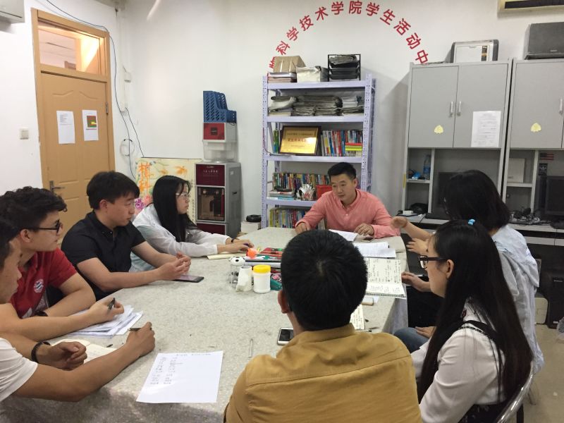 5月23日下午四点,太阳成城集团研究生会在二号办公楼3031举行了本学期第三次例会,此次会议由太阳成城集团分管员工工作副经理、副书记牛奔主持,辅导员贾慧敏、研会主席刘欢及各位副主席和部长参加。