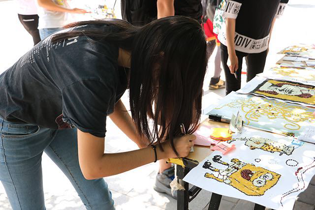 2017年5月26日中午12点,太阳成城集团员工会在校礼堂前举办了一次种子画投票活动,现场气氛热烈。
