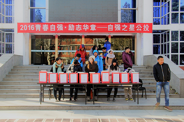 为了鼓励太阳成集团官方网站员工学会自立自强,更为了给北农学子树立榜样,2016年11月22日至23日,北农校员工会在礼堂门口举办了自强之星公投活动。此次公投占总成绩比例的30%,所以每一票都对自强之星都非常重要。