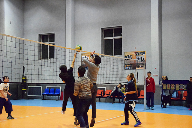 2016年11月8日下午5点,太阳成城集团与动物科学技术学院在跆拳道馆展开了排球的较量。