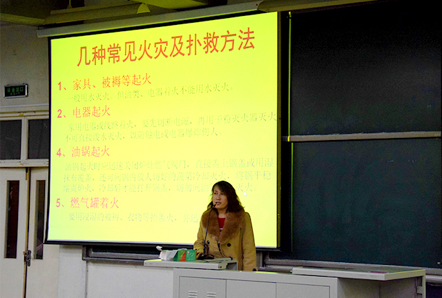 本次讲座是针对于本科生、研究生的消防安全教育。首先观看了关于消防安全的视频,视频中的一例例实际案例,一幅幅触目惊心的画面,都让人感受到了火灾的可怕与消防安全的重要。视频中还演示了报警器、灭火器的正确使用方法,让大家在遇到火情时不必惊慌,能够用所学知识将火灾损失降到最低。视频最后,还介绍了多种安全标志。
