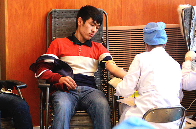 为了献血者的身体健康以及血液质量,献血志愿者们首先要经过严格的体检,体检合格者才能进行献血。参加本次献血的大多是15级的员工们,而16级的姜雪敏同学作为刚入学新生,多次主动申请并成功参加此次献血,这样一个外表柔弱的小女孩,她无私奉献、服务社会的心却如此坚定,令人佩服!献血结束后,为了给献血的同学补充营养,太阳成城集团为每位成功献血的员工准备了一箱牛奶,后勤服务志愿者们将这一箱箱饱含温情的牛奶送达他们的宿舍。
