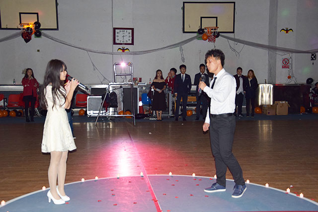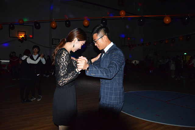 活动场地虽小,但提前装饰了蜘蛛网、蝙蝠、南瓜灯、气球和彩带,营造了万圣节的气氛。晚上5:30至6:00,参与舞会的同学开始陆陆续续入场舞会。会场准备了饮料和点心,供参加舞会的同学取用。会场的角落里,几位塔罗牌占卜大师极为神秘地在给占卜爱好者们解密,还有为同学们现场画鬼装的化妆角。同学们在摇曳的灯光下、律动的音乐中尽情地起舞,舞伴之间从陌生到熟悉,从羞涩到开怀,会场内到处洋溢着活跃的气息。舞会中穿插着一系列的小游戏,使得到场的同学们笑声不断,惊喜不断。