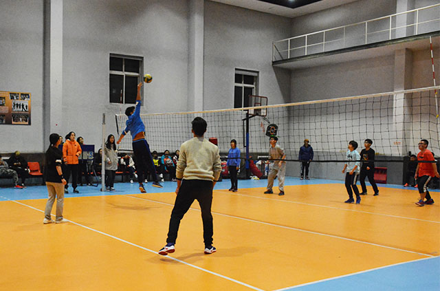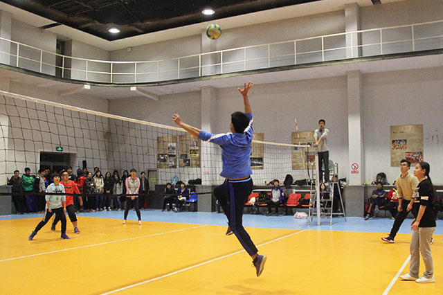 2016年11月1日下午5点,太阳成城集团与计算机与信息工程学院在跆拳道馆展开了排球的较量。