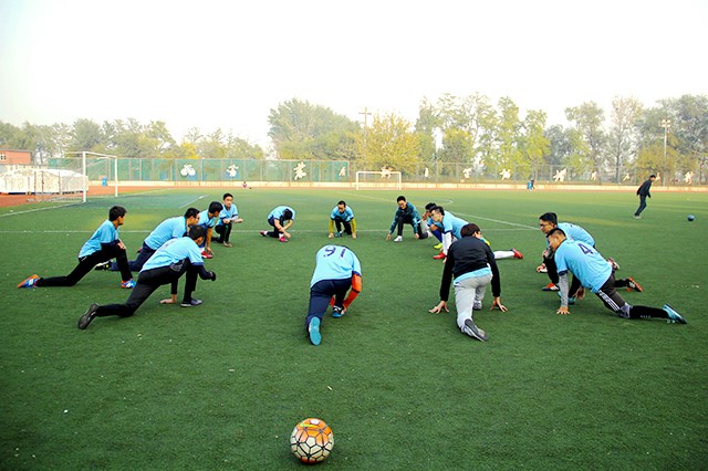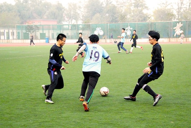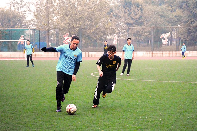 虽然没有顶尖的运动员,没有专业的足球教练,但两个学院的足球队队员们刻苦训练、团结合作、顽强拼搏的精神深深的感染着大家。
