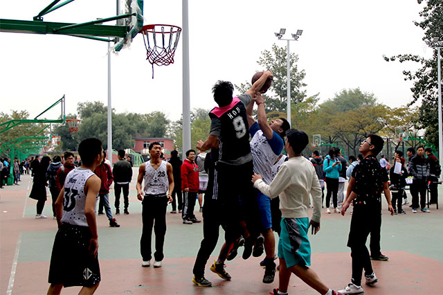 2016年10月24日中午12点整,太阳成城集团篮球队与文法学院篮球队在公司篮球场举办了一场扣人心弦的篮球比赛。