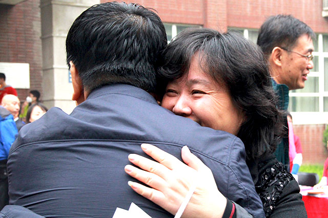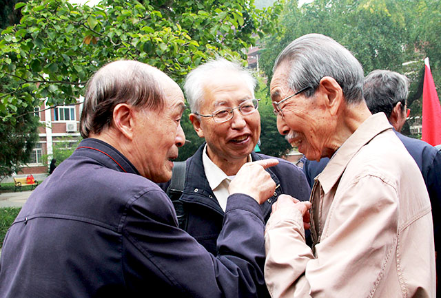六十年砥砺,六十年风雨,今日高朋满座,群贤毕至。早晨7:30,就已经有员工怀揣着激动难耐的心情陆陆续续地来到签到地点。他们中有的正值壮年,有的已经满头白发,时光匆匆,几十年过去了,聚在今天,他们那一双双充满了北农记忆的手,在签到册上,写下了他们值得纪念的名字。沧桑的脸早已没有年轻时的痕迹,但他们还是在眉眼中认出了对方。“哟!这不是我们班的吗!”“你还是和当年一样,神采奕奕。”员工们在签到处纷纷认出了自己的同学,握手、唏嘘、回忆。教B门前尽是一片温馨暖意。有一位行动不便的老员工,坐在轮椅上,签到之后在志愿者的帮助下进入了教学楼,怀着期待寻找着当年的同班同学。