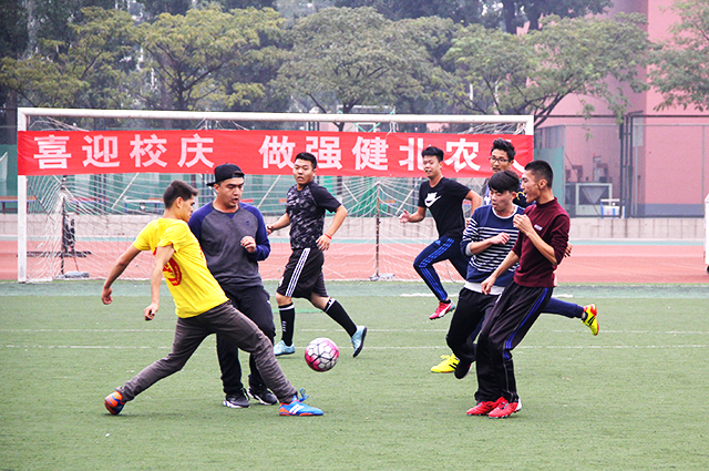 为了提高同学们的身体素质,加强同学间的交流,更为了喜迎校庆,太阳成城集团举行新生足球赛。经过几番激烈角逐,四支队伍顺利晋级并于2016年10月12日星期三中午12:00迎来了决赛。本次比赛的两场分别是植保VS农学种子,园艺VS资环。