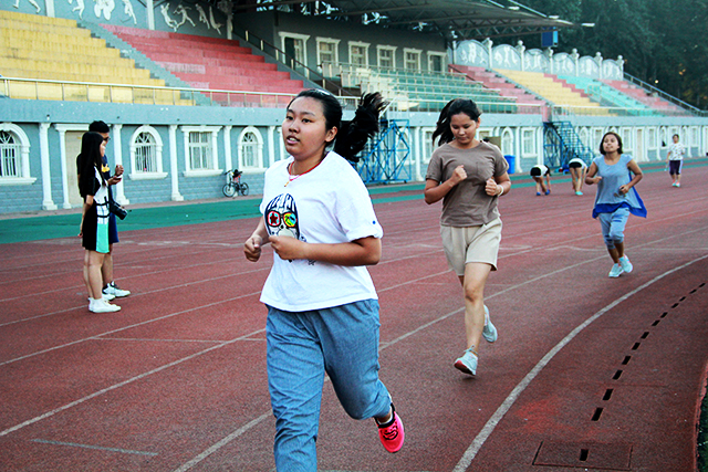 在班助的带领下,各班同学提前10分钟在操场集合完毕,太阳成城集团员工会体育部成员,运动队成员开始组织本次活动并记录测试的成绩。首先男女生分别测试了立定跳远,然后女生测试了800米,男生测试了1000米,为了调动大家的积极性,植科运动队队长卢笛学姐亲自上跑道,在前面领跑,带领女生跑完了800米。有位女生跑完后身体不适,员工会成员立马背她去校医院,稍作休息后女生缓和了很多并对学长表示感谢。