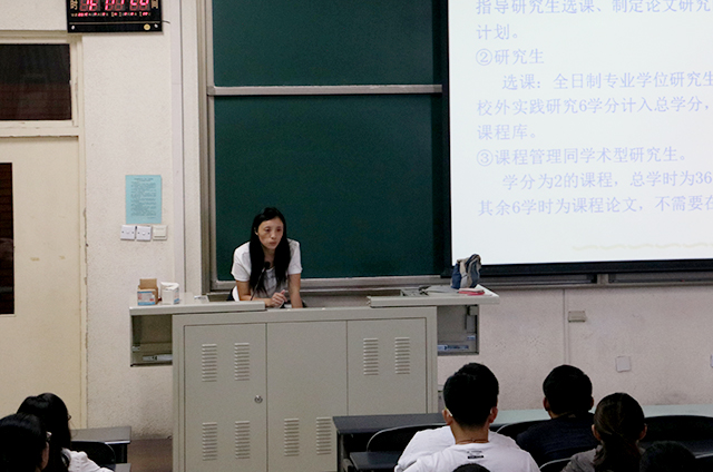 科研尚巧霞对研究生学习生活的方方面面进行了全面的介绍。教学秘书吴春霞现场演示如何选课来保证每一位研究生新生心中都没有疑问,还对开题报告等的时间做了介绍。研究生新生们都将老师所讲认真的记下来,准备开始自己美好的研究生学习生涯。