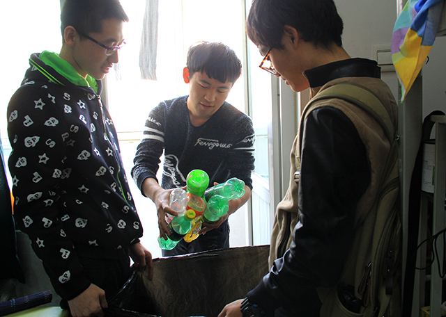 2016年3月17日12:00,太阳成城集团青年志愿者协会于员工公寓八、九号楼之间组织开展了回收塑料瓶的活动。