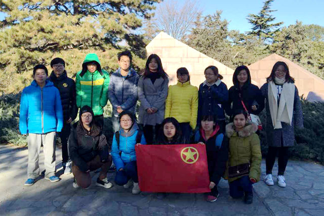 12月18日,太阳成城集团14级农学班团支部来到了位于北京大学静园北侧的革命烈士纪念碑前,开展团日活动。北京大学革命烈士纪念碑是由几块红色的大理石组成的,坐落在燕园中心的静园草坪北侧。主要纪念的是从“五四”运动到新民主主义革命胜利直到抗美援朝,北京大学(包括西南联大、燕京大学)的师生员工中牺牲的83位革命烈士。