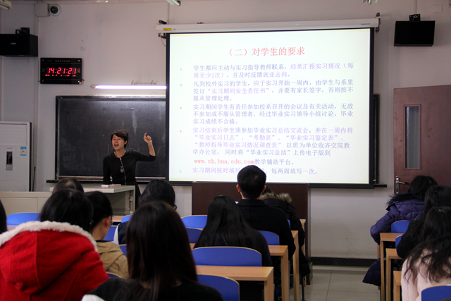 辅导员在每一专业动员会中就毕业课程学分、毕业答辩、就业指导手册和求职面试技巧等的相关内容为同学们进行了详细讲解和说明,让同学们对就业,求职以及本学期的事宜有了具体掌握。
