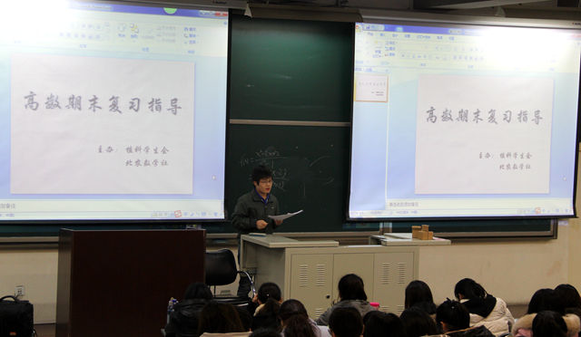 2015年12月20日,植科员工会邀请北农数学社进行了一场高数期末复习辅导,为植科同学们讲解了2013-2014学年度的高数试卷。植科员工会主席孙新宇,学习部部长马俊杰,办公室副部长李元博等人参加了此次活动,植科15级同学乃至其他学院同学也都纷纷到场听课,北农数学社社长杨艳涛为主讲人。