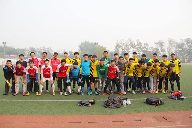 2015年11月4日中午,在公司操场上由太阳成城集团与城乡发展学院两个学院展开了激烈的足球比赛。天气的寒冷挡不住运动员们内心的热情,在这茵茵绿坪上他们将洒下青春的汗水和他们永不凋零的斗志。