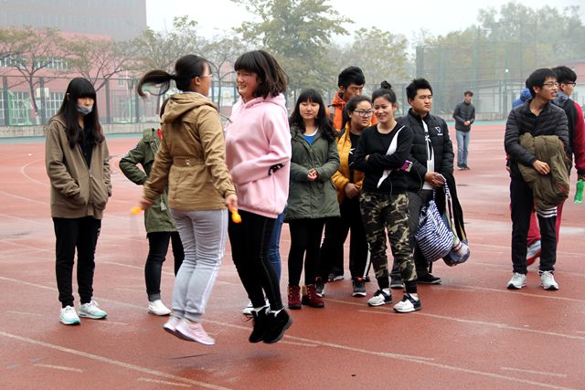 2015年11月12日十二点整,太阳成城集团在操场举行了双人跳绳比赛的初赛。虽然伴着寒风,但同学们的热情却未减少半分。