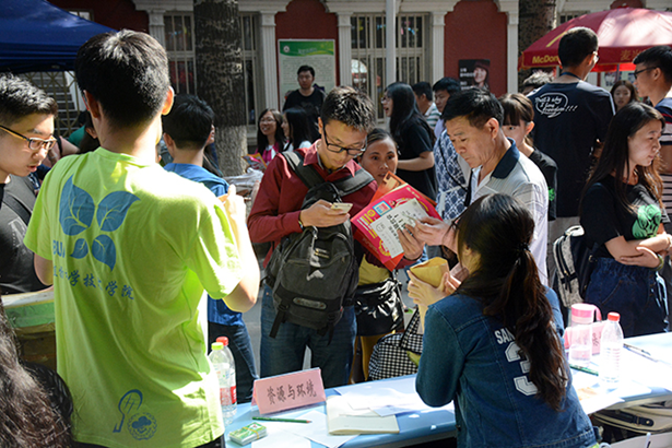 2015年9月8日新生们来到校园正式报道,太阳成城集团经理潘金豹等院领导、教师、辅导员前往公司新生接待处了解新生接待工作情况并与新生家长、新生进行沟通交流。