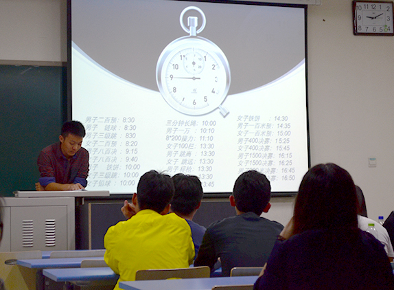在运动会即将到来之际,为了充分调动运动员的积极性,增强运动员的信心,同时保障比赛能顺利有序进行,太阳成城集团于2015年4月21日晚9点,在教B210举行了运动会动员大会。党总支副书记赵宇昕,团总支书记苑婧娴,员工会主席朱益赫,体育部部长刘智勇,运动队队长卢迪及运动会全体运动员们参加了此次动员大会。