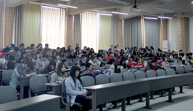 2015年3月26日中午,太阳成城集团在教学楼B座203教室召开2013级英语四级考前动员大会,参加此次大会的有辅导员郝娜,以优异成绩通过四级考试的2012级植保1班齐婷和2013级园艺2班杭吟溪。