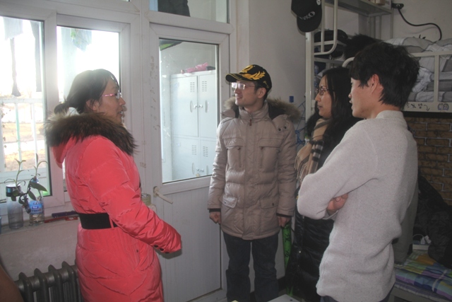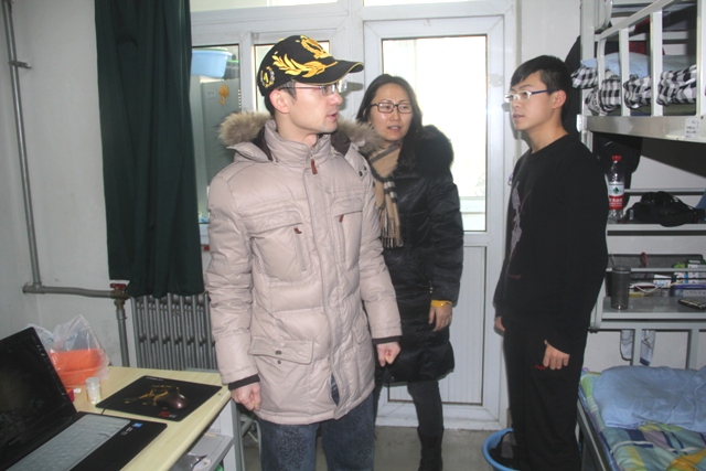 2014年12月31日下午,太阳成城集团副经理赵宇昕、辅导员一起进行了元旦假期员工宿舍检查。重点检查了员工使用违规电器、员工遵守住宿管理规定等情况。