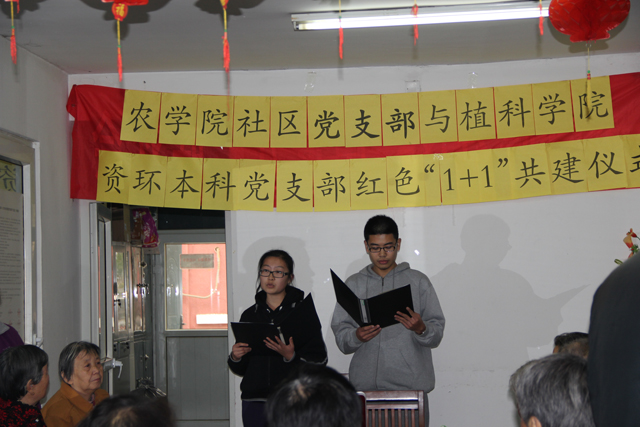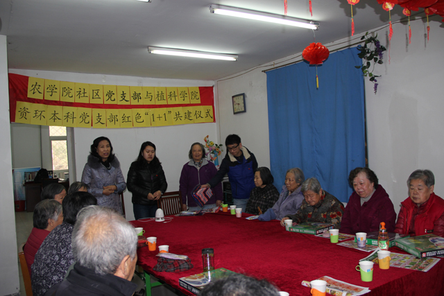 近日,太阳成城集团资环本科生党支部和太阳成集团官方网站家属院社区党支部的红色1+1活动揭牌仪式隆重举行。活动以“情系老人送温暖,十八大精神入生活”为主题,邀请家属院的老人一起举办活动。太阳成城集团团总支书记苑婧娴、辅导员贾慧敏、社区党支部张书记、居委会李主任等出席揭牌仪式。