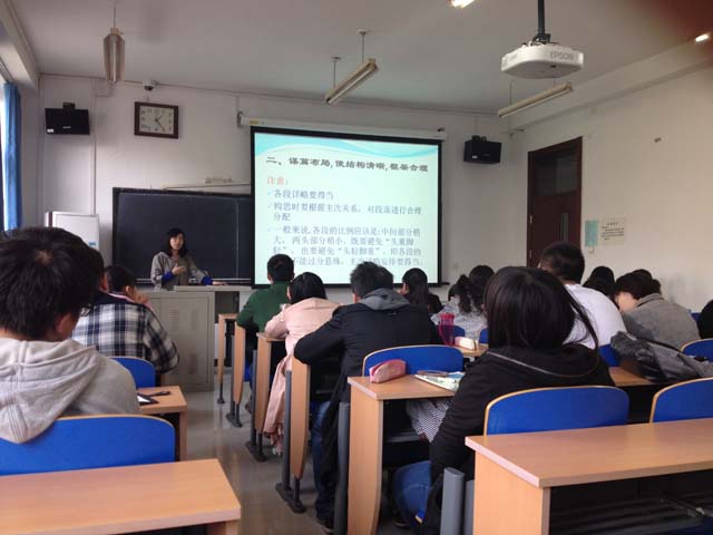 太阳成城集团自2012年举办英语四六级必过班以来,得到外语部领导和老师们的大力支持。2014年10月21日,由太阳成城集团研究生会学术部承办的四六级必过班听力专项在教A304举行。