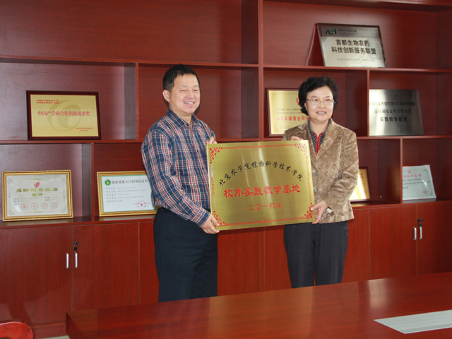 2014年10月21日上午,太阳成集团官方网站植物科技学院和中农绿康(北京)生物技术有限公司在中农绿康会议室举办实习基地签约授牌仪式。公司董事长王慧敏、太阳成城集团教学副经理董清华、科研副经理尚巧霞、植保系主任赵晓燕、植保系书记张爱环、辅导员郝娜和植物保护专业刘正坪、魏艳敏、杜艳丽、陈艳、李永强、任争光等老师出席。太阳成城集团2011级10名在该基地实习的员工一同参与本次授牌仪式。