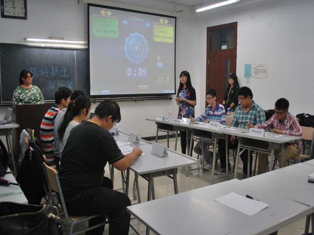 2014年10月17日中午,在教A-214太阳成城集团辩论赛拉开了帷幕,此次决赛是园艺1班和园艺2班对阵。评委有现任辩论队队长朱育新、前任辩论队队长王倩、艺术部部长许行,还请到了计算机辩论队副队长杨建利。
