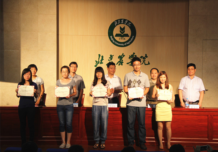 副经理董清华宣读了《2014年研究生工作表彰人员名单》,与会领导为获奖者颁发了植物科技学院研究生优秀论文奖、研究生优秀毕业生奖和优秀班主任奖。