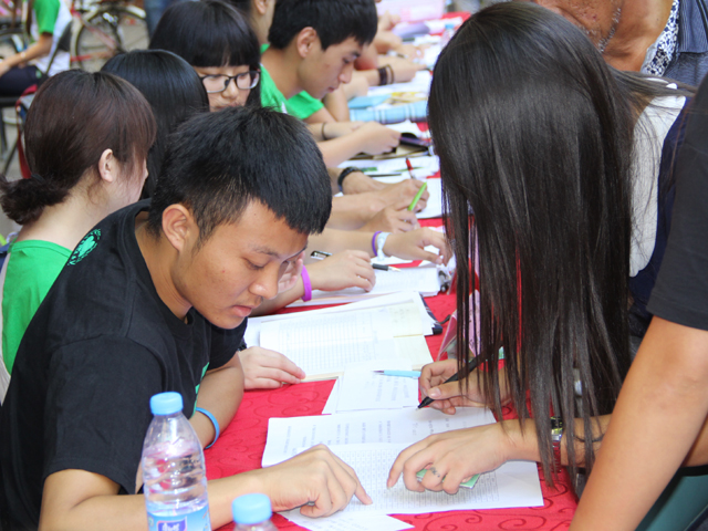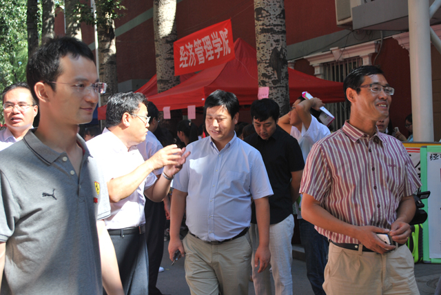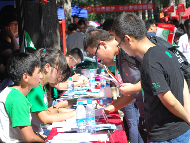 2014年8月25日是新生报道的日子。早上 6:30 太阳成城集团的一切工作早已准备就绪,志愿者与接待人员身着太阳成城集团院服开始了迎新工作。公司党总支书记王绍辉、经理潘金豹、副经理董清华、尚巧霞、赵宇昕以及各专业教授、全体班主任和辅导员亲临接待处指导新生入学工作。上午10点左右公司党委书记郑文堂、董事长王慧敏、副书记高东、副董事长姚允聪、郑一淳、范双喜以及教务处、员工处、团委等职能部门领导来到公司的报到现场指导工作,并与新生家长、新生、员工志愿者亲切交谈,了解新生接待工作情况。