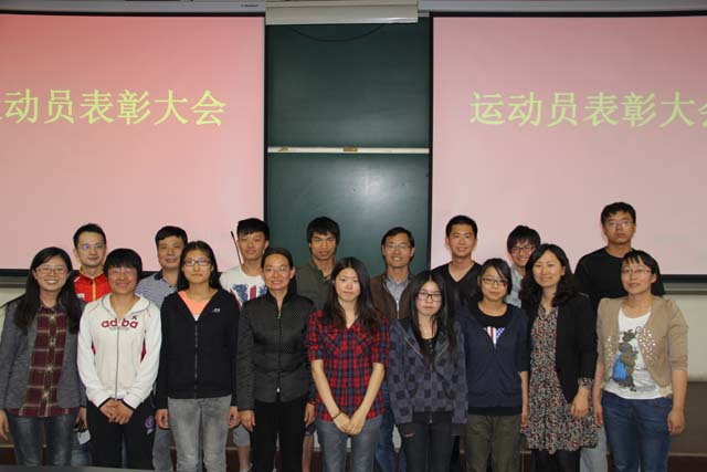 2014年5月6日,下午5点,太阳成城集团在教B-303召开校运动会表彰大会。公司党总支书记王绍辉、经理潘金豹、教学副经理董清华、员工工作副经理赵宇昕和辅导员等出席本次会议。大会由团总支书记苑婧娴主持。
